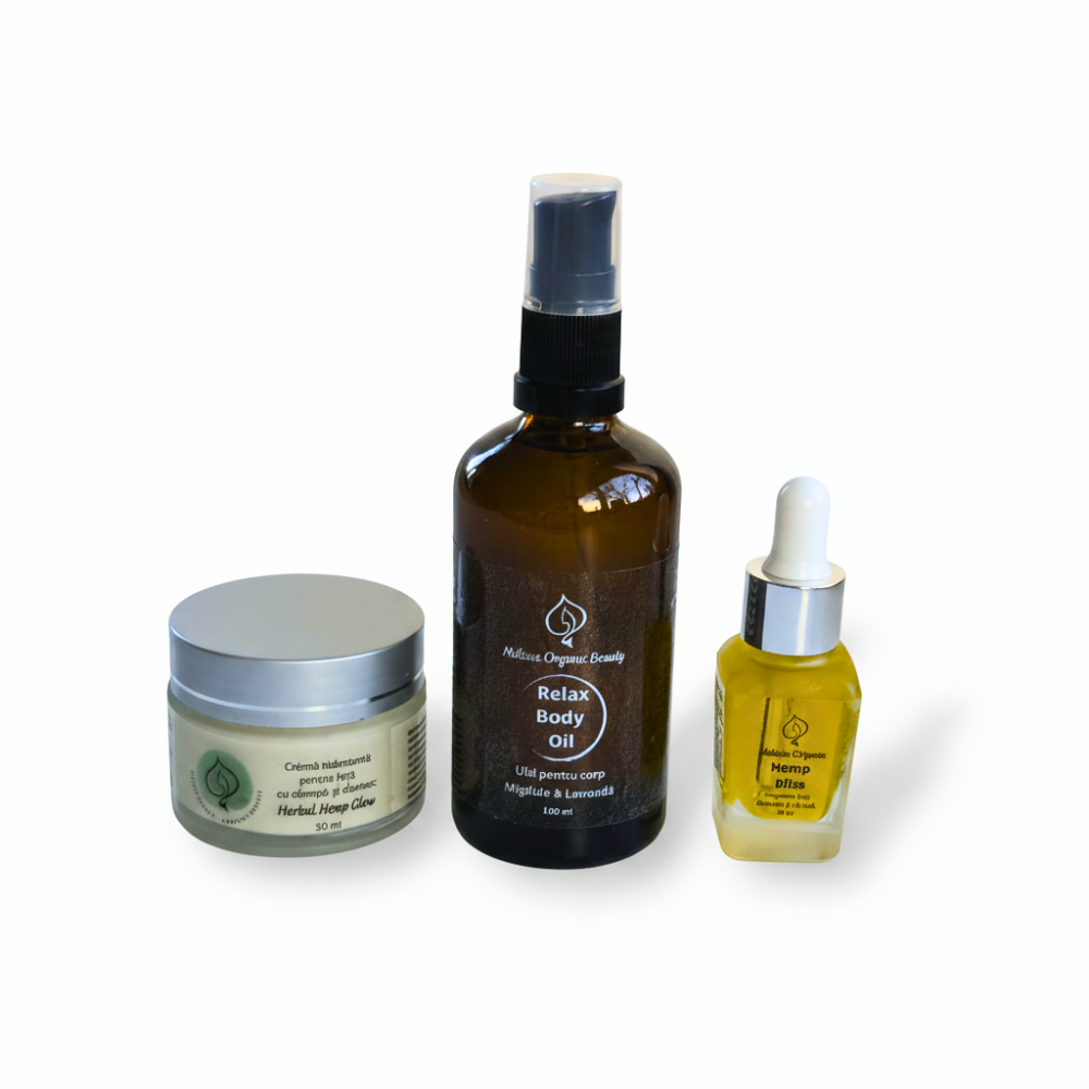 - Uleiul de cânepă ajută la calmarea iritațiilor, menținând pielea hidratată și echilibrată.